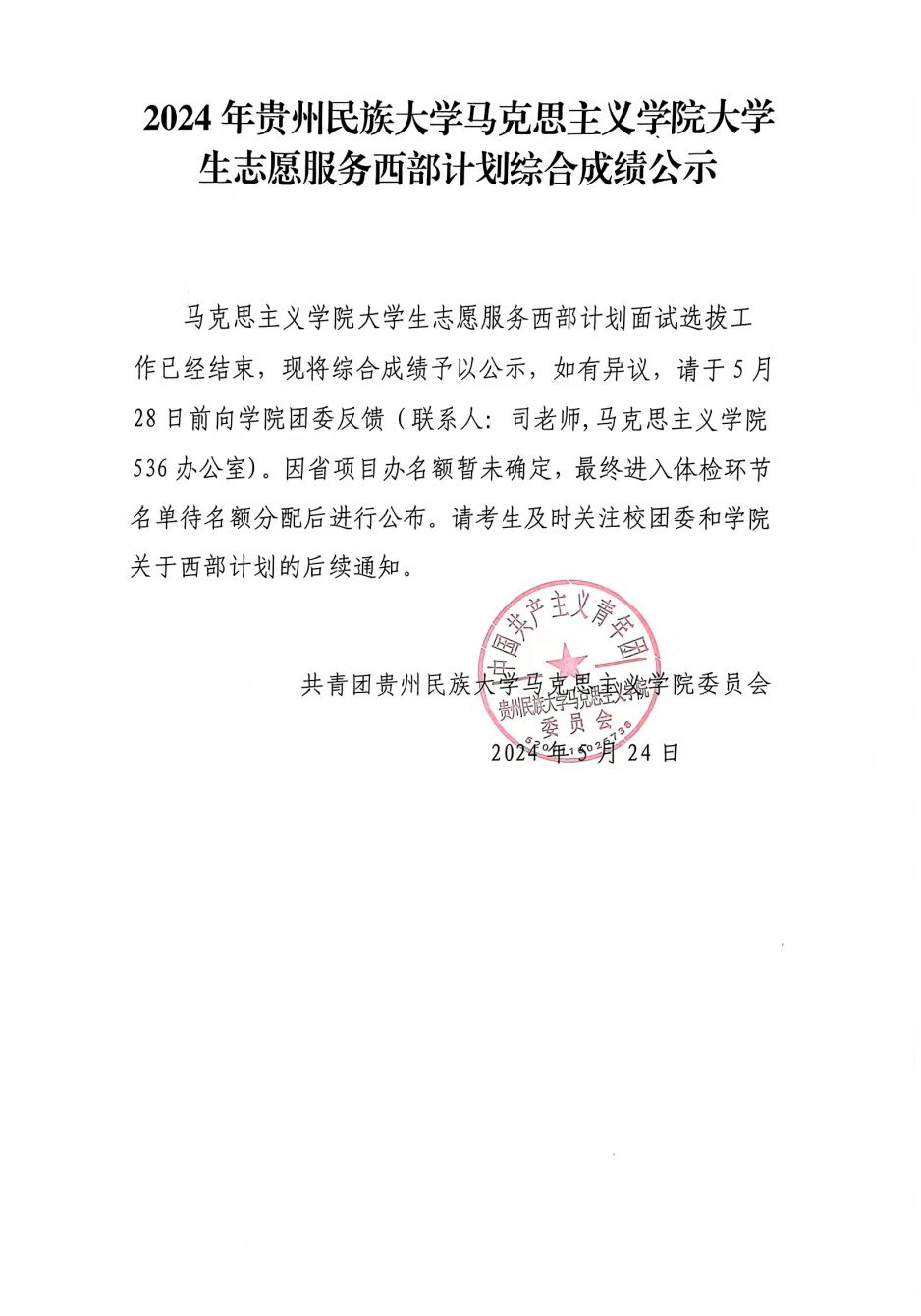 通知公告|2024年泰国a片 大学生志愿服务西部计划综合成绩公示