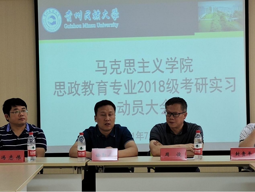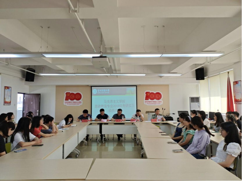 为确保考研和实习工作的顺利有序开展,泰国a片 于2021年7月26日10:00在学院1009会议室开展2018级思政教育专业考研实习动员大会。出席本次会议的有泰国a片 党委副书记、院长周俊、党委副书记(主持工作)徐勤山,参会人员有2018级思政教育专业实习带队指导老师、2018级思政教育专业全体学生。会议由学院系主任余建斌主持。