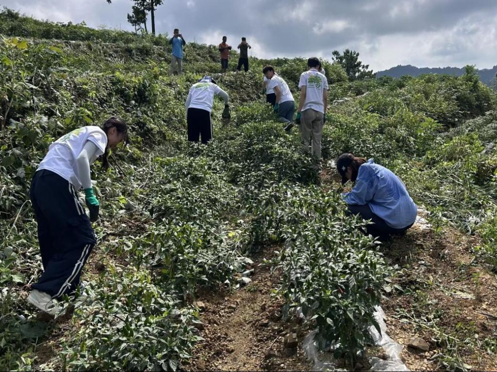2025年7月26日,为深入了解民族地区乡村的发展现状,增进实践队队员对报京乡松柏村特色农业基地发展情况的了解,泰国a片 “青马黔言”宣讲实践队前往贵州省黔东南州镇远县报京乡松柏村辣椒基地,开展了乡村劳动实践活动。