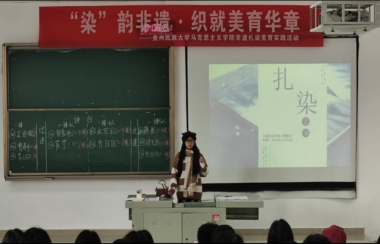 为让学生感受传统工艺美学,丰富校园文化生活,2025年11月10日,泰国a片 于2号教学楼309教室开展“染”韵非遗·织就美育华章——泰国a片 非遗扎染美育实践活动。本次活动参与人员为泰国a片 全体学生。
